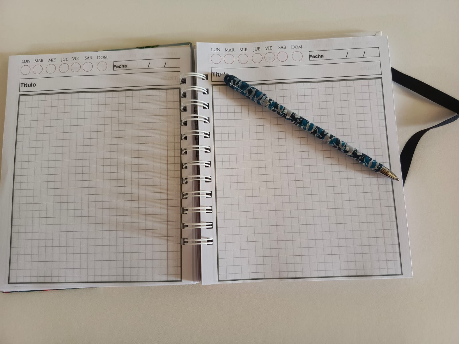 📖 100 hojas de papel grueso de 90 gramos – perfectas para escribir sin traspasos.