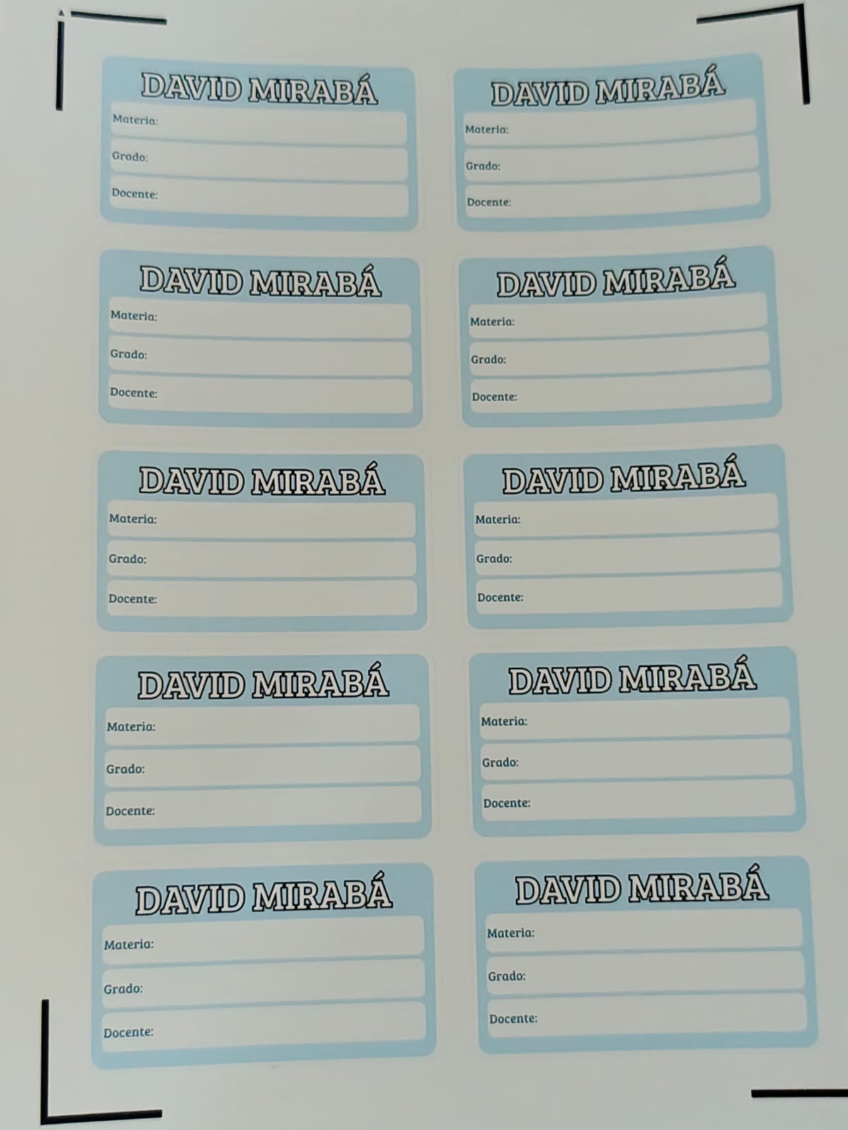 Nuestros membretes escolares tipo Barón son coloridos, creativos y totalmente personalizables con nombre, grado, materia y más.